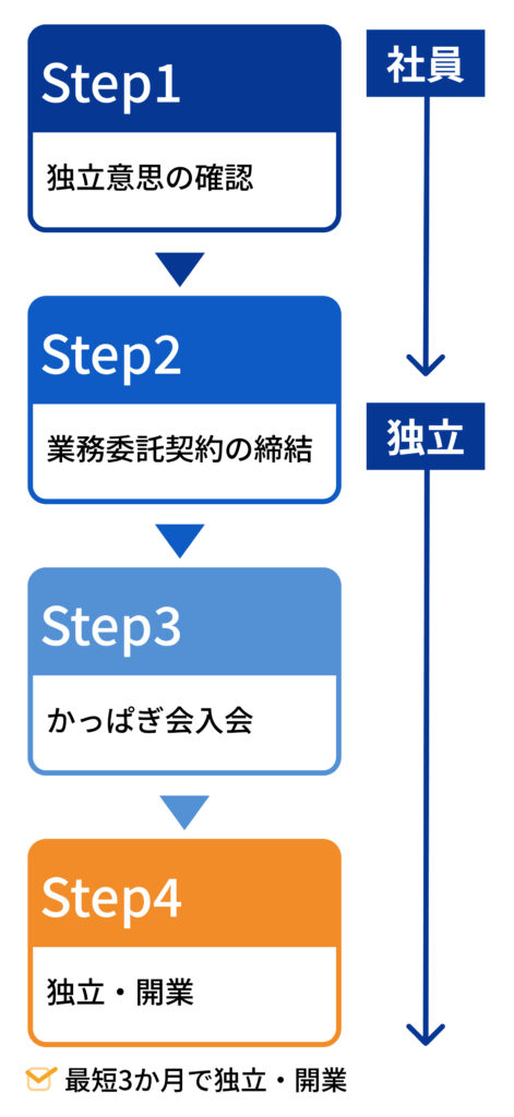 ただし、稼働分すべての仕事を発注する保証はないため、独立者は独自営業も必要。 - ベネフィットが主宰する「かっぱぎ会」への入会が必須。